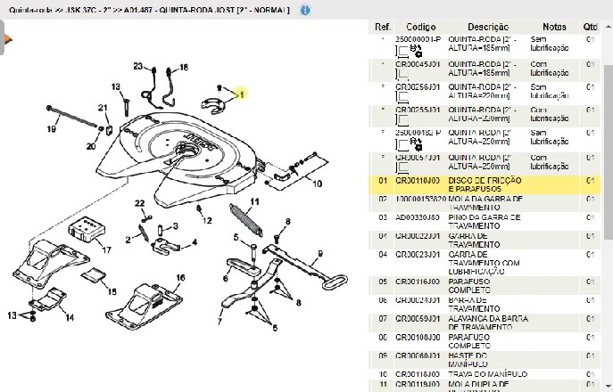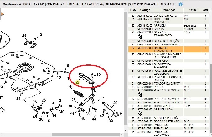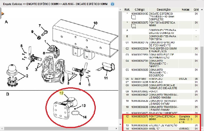 39610 - PONTEIRA ENGATE RODOTREM DOLLY CAMBAO RIGIDO JB90W ESFERICO 90MM