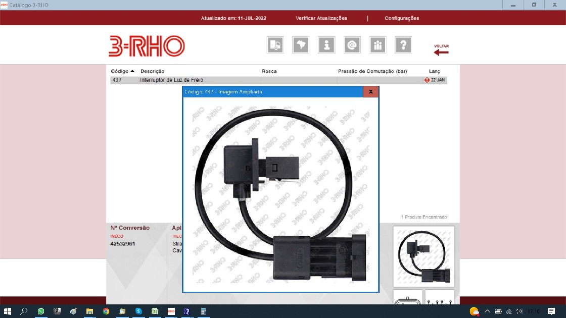39623 - INTERRUPTOR LUZ FREIO IVECO STRALIS/TECTOR/CAVALLINO/EUROCARGO/EUROTECH/EUROTRAKKER/VERTIS