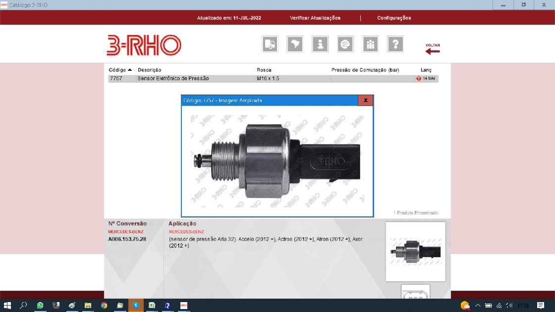 39628 - INTERRUPTOR ELETRONICO PRESSAO AR MB ATRON/AXOR/ACCELO 12/... 16X1.5 MM