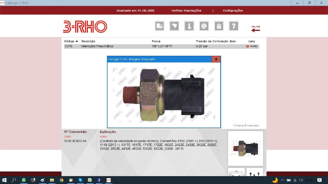 39630 - INTERRUPTOR PNEUMATICO FORD CARGO 815/1517/1722/1822/2422/2428/2622/2628/4532 08/11 1/8"X27 NPTF 0.20 BAR