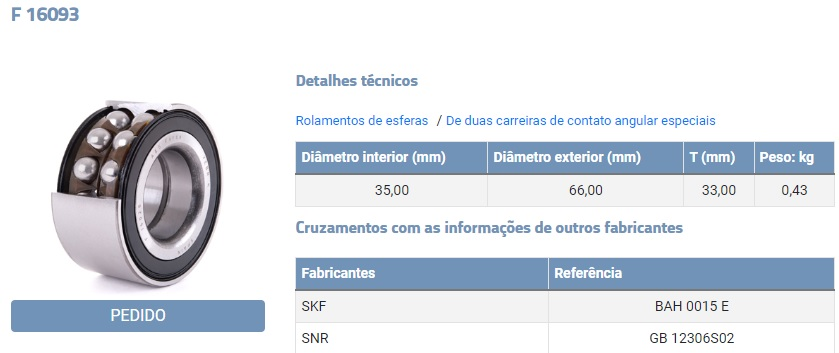 39709 - ROLAMENTO PONTA PINHAO IVECO 1-2 DIF