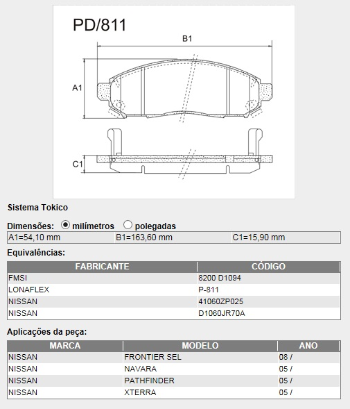 39801 - PASTILHA FREIO DIANT NISSAN FRONTIER SEL 2.5 C/ ABS