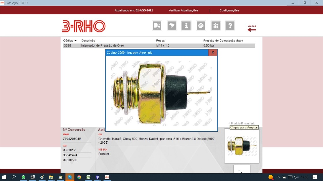 39846 - INTERRUPTOR OLEO MOTOR GM/NISSAN MWM S10/BRAESER/FRONTIER 2.8L 00/10