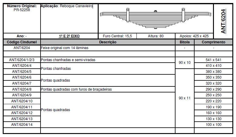 39980 - FECHO MOLA FECHO CARRETA 7/16 FURADA CANAVIEIRA ANTONINI 14 FOLHAS