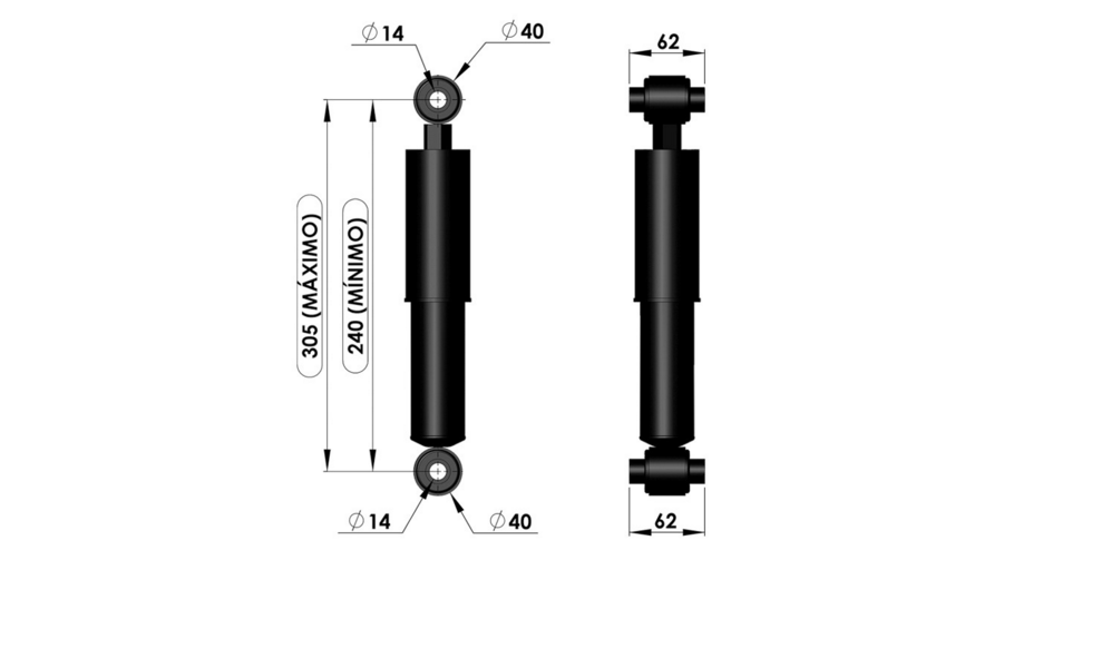 40132 - AMORTECEDOR CABINE TRAS VOLVO FH/FM HORIZONTAL