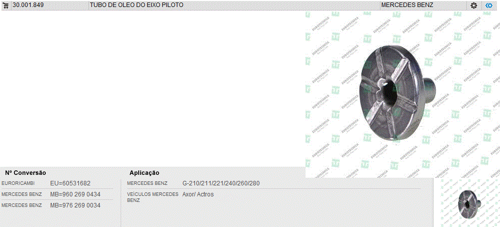 40303 - TUBO INJETOR OLEO EIXO PILOTO CAMBIO MB AXOR/ACTROS G 131/210/211/221/240/260/280