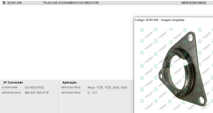 40701 - PLACA PLANETARIA CAMBIO PESADA MB G 131/211 2ª GERACAO