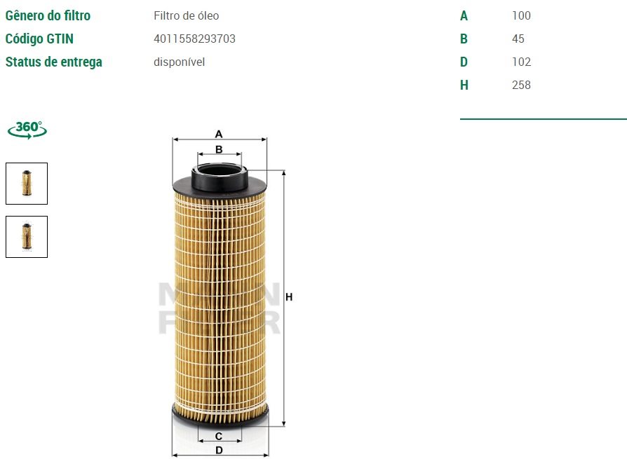 40715 - FILTRO LUBRIFICANTE SCANIA 124 R420 HIGHLINE SERIE 5