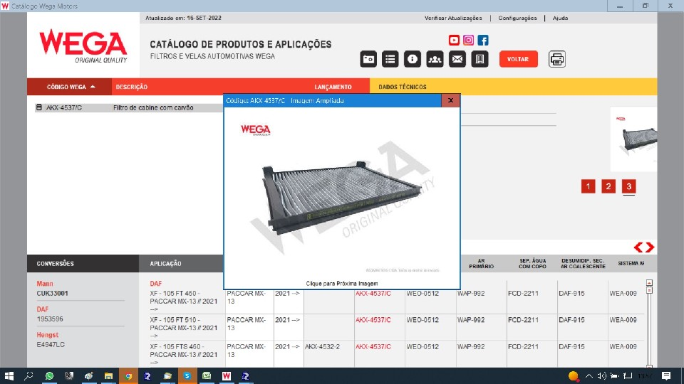 40946 - FILTRO AR CONDICIONADO CABINE DAF XF105 COM CARVAO 21/....