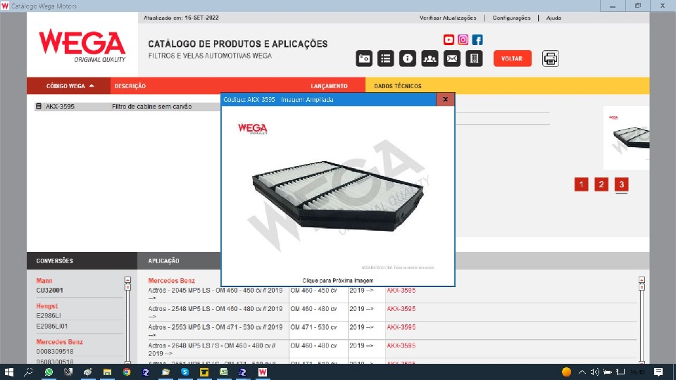 40947 - FILTRO AR CONDICIONADO CABINE MB ACTROS 2045/2548/2553/2648/2651/2653