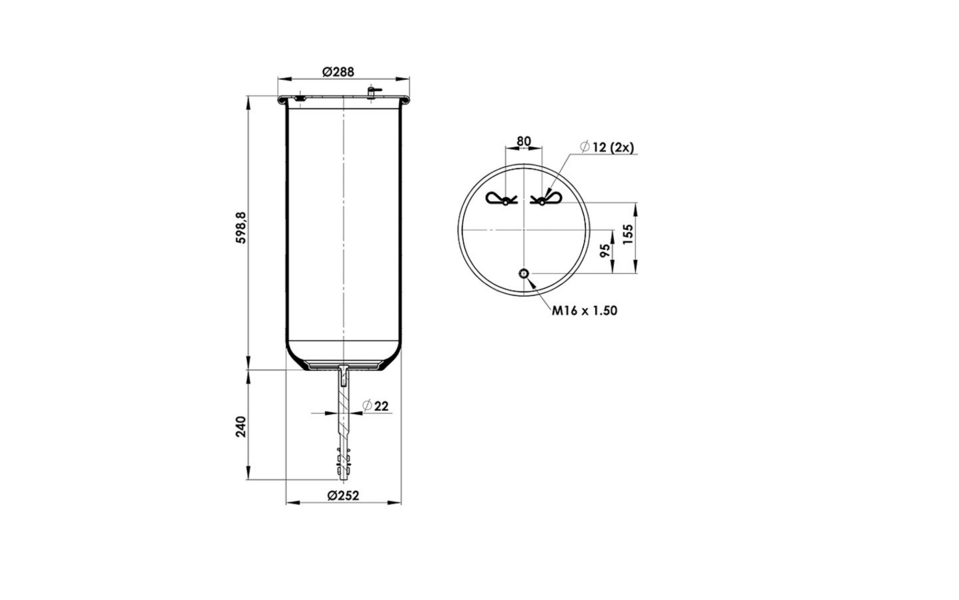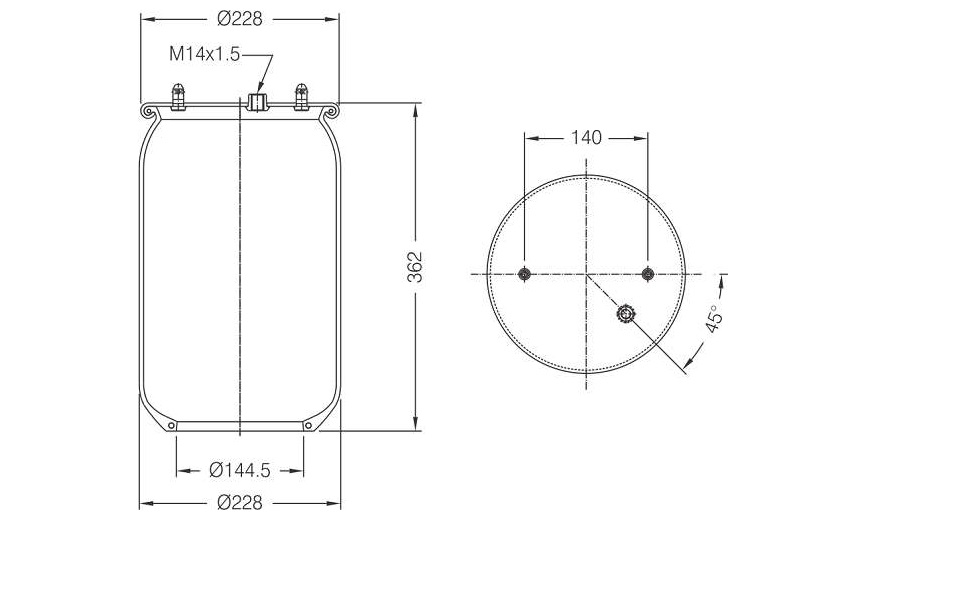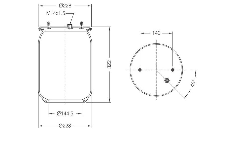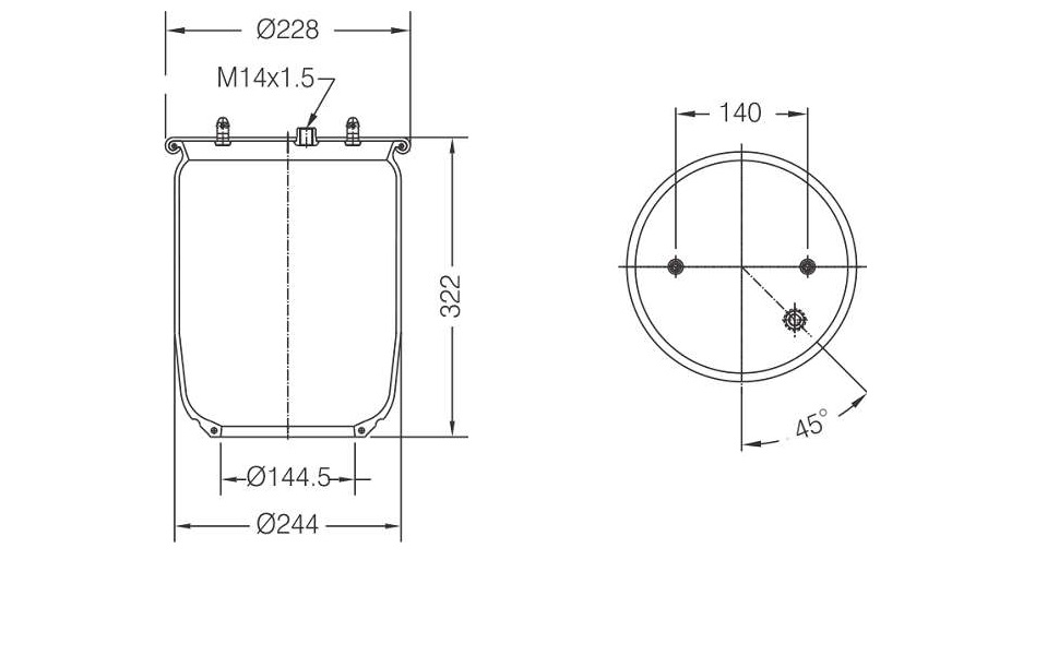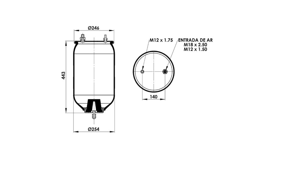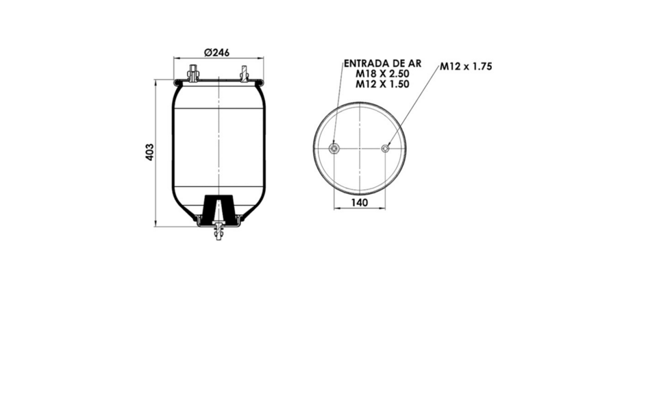 40972 - KITS PNEUMATICO FOLE SUSPENSAO TRAS SCANIA P/G/R 114/124 P/ BASE SUSPENTECH HASTE 22MM
