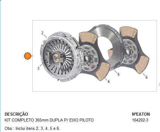 41335 - KITS EMBREAGEM DUPLA FORD CARGO/VW 1630/1831/2630/26.220/26.260/31.260/35.300 365MM