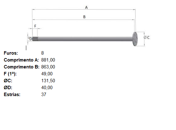 41512 - SEMI EIXO FORD CARGO/VW DIF RS/MS155 .../2001 LONGO LD