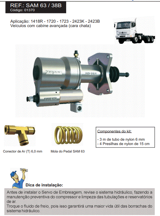 41823 - SERVO EMBREAGEM MB ADAPTACAO 1214/1218/1414/1418 CARA CHATA C/ KITS ADAP NA CARCACA EMBR