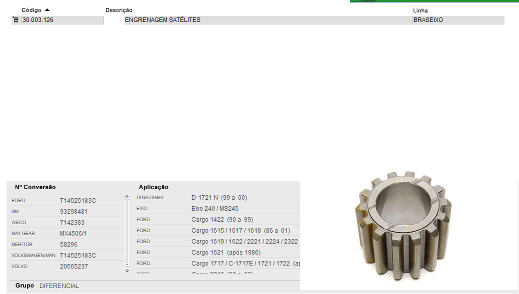41920 - ENGRENAGEM PLANETARIA CX SATELITE REDUZIDA DIF. GM/FORD CARGO/VW/MB RS 240 USA 4 PC