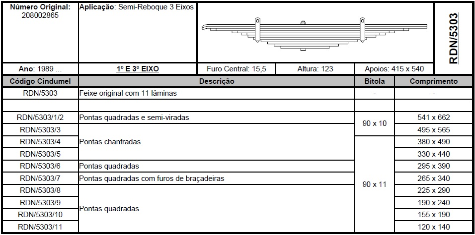 42524 - FECHO MOLA FECHO CARRETA 7/16 FURADA RANDON 89/... 1/3 EIXO FURO CENTRO 11 LAMINAS