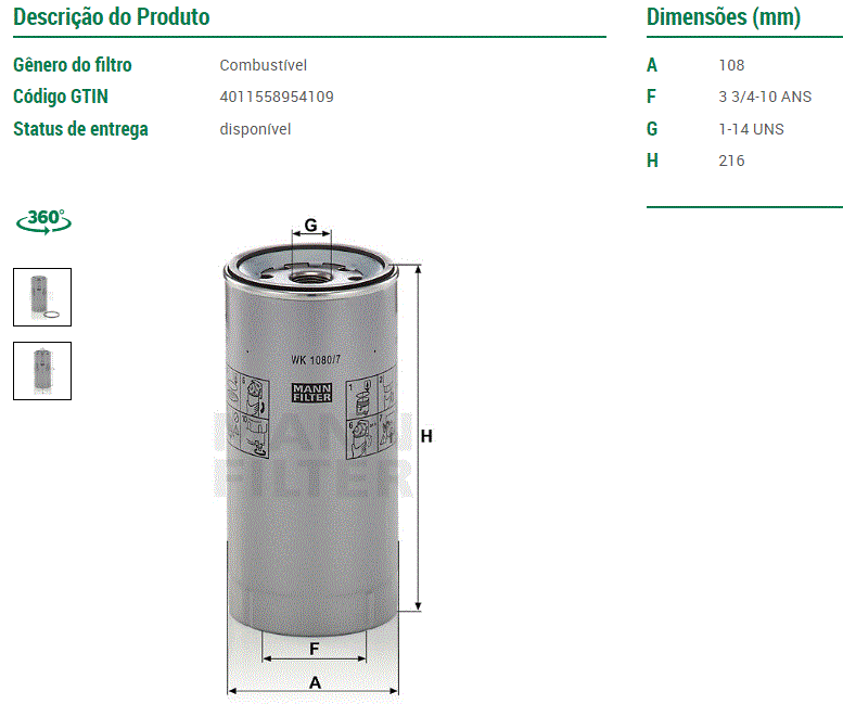 42716 - FILTRO DIESEL MB ACTROS/ATEGO OM 501LA/904LA USA COPO CI-46364