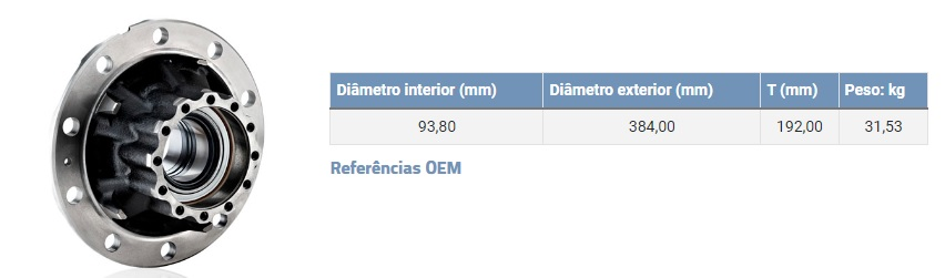 4363 - CUBO RODA TRAS VOLVO FH/FM COMPLETO COM ROLAMENTO INT/EXT CANELINHA