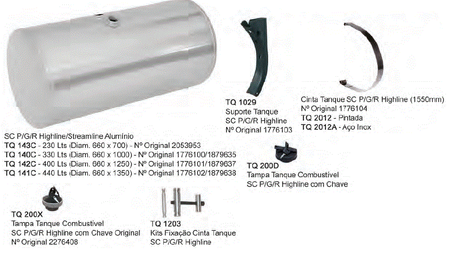 43486 - TANQUE COMBUST 230L ALUMINIO REDONDO SCANIA 124 P/G/R HIGHLINE