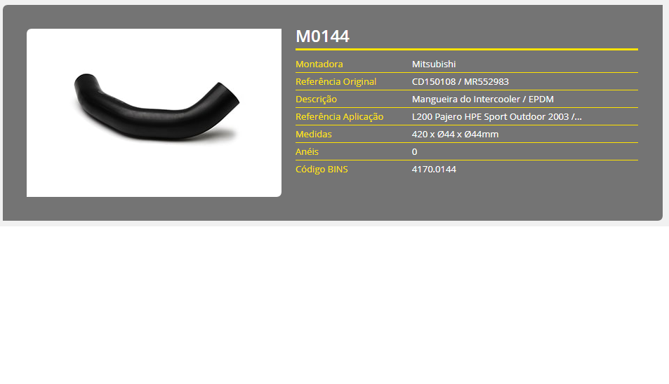 43750 - MANGUEIRA INTERCOOLER L200 HPE SPORT 2003/...