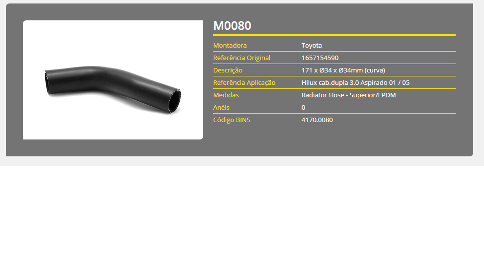 43761 - MANGUEIRA RADIADOR INF HILUX 3.0 ASPIRADO 01/05