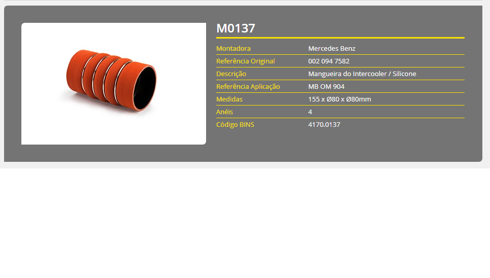 43785 - MANGUEIRA INTERCOOLER VW WORKER 13.180/17.250