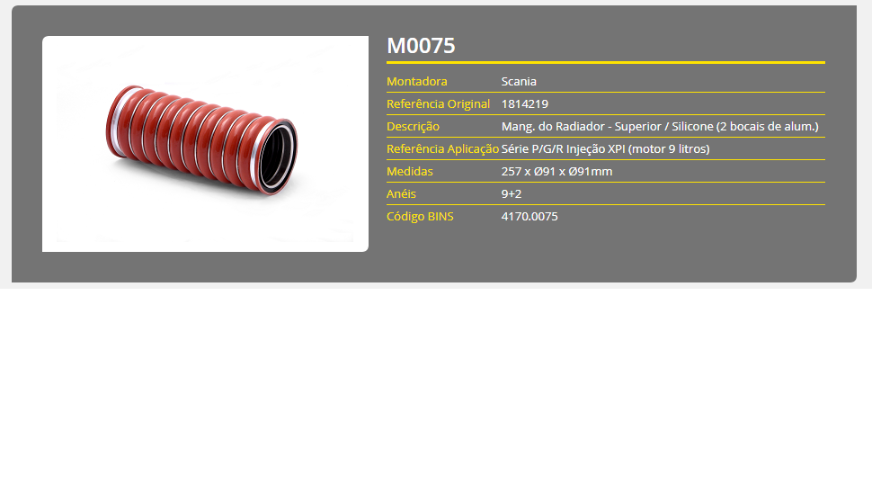 43780 - MANGUEIRA INTERCOOLER SCANIA 124 P/G/R