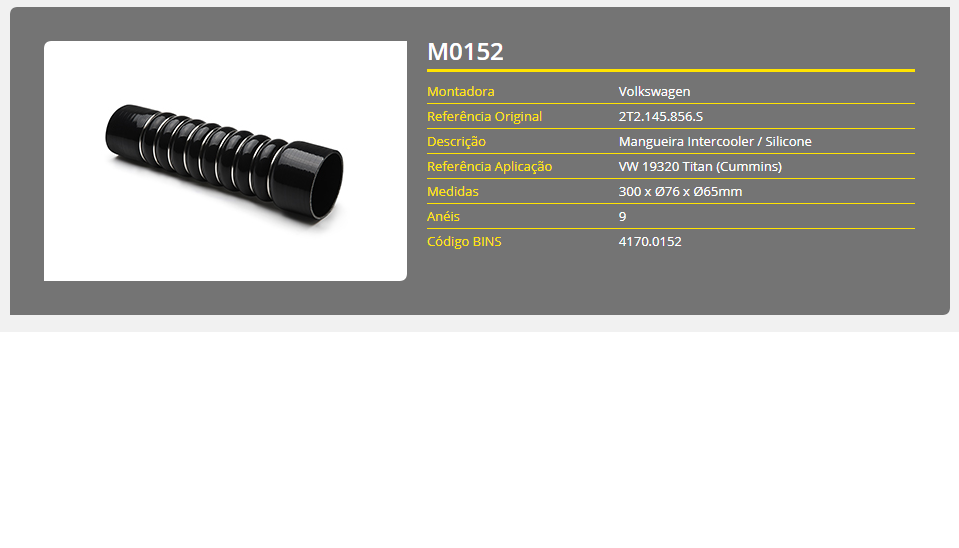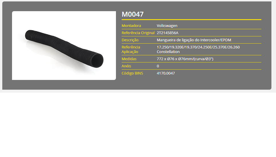 43787 - MANGUEIRA INTERCOOLER VW CONSTELLATION 19.320 CUMMINS