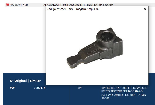 43988 - ALAVANCA CAMBIO INTERNA VW 17.250E/13.180E FS4205A/FS6306B