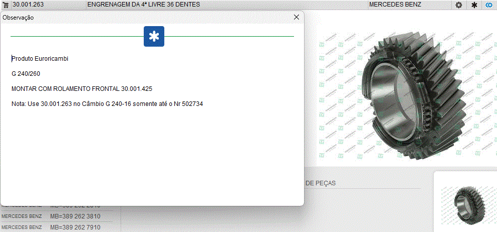 44078 - ENGRENAGEM CAMBIO MB 3/4 G 241/280