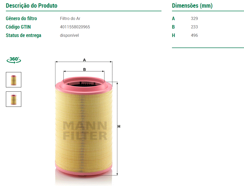 44056 - FILTRO LUBRIF MAN TGX 28.440/29.440/33.440 D2066/D2676 2012/...