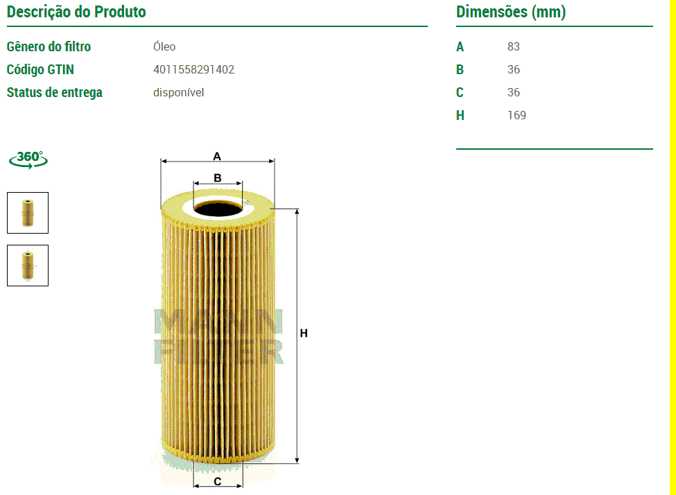 44049 - FILTRO LUBRIF VW 13.190/15.190/17.190 MAN D08