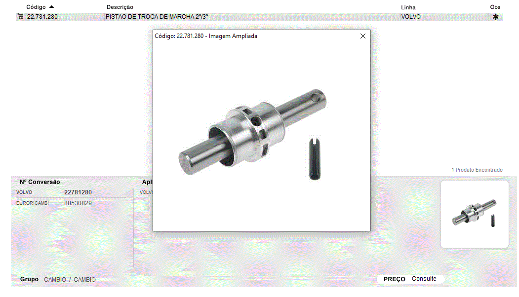 44064 - PISTAO ACIONAMENTO TROCA MARCHA 2-3 VOLVO VT2412B/AT2412