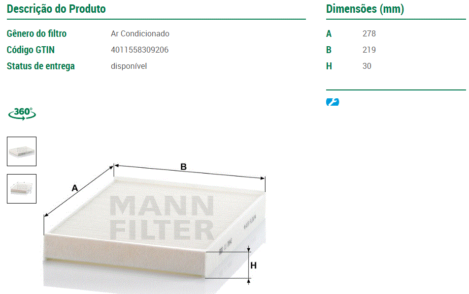 44185 - FILTRO AR CONDICIONADO VW AMAROK 2.0 TDI 11/...