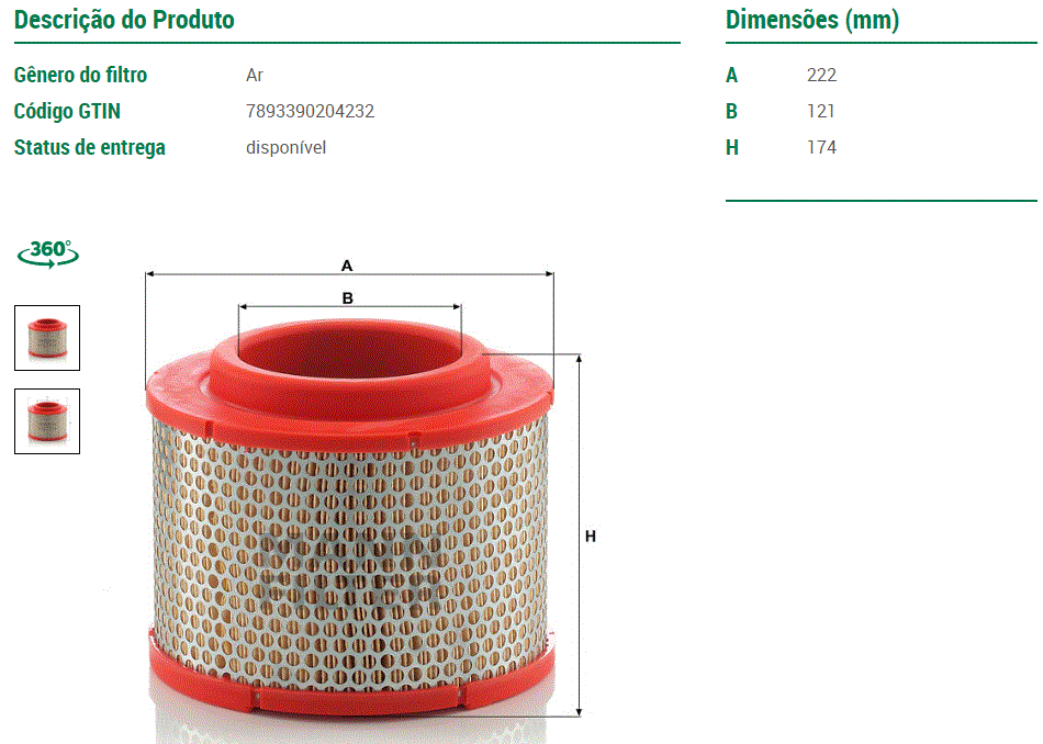 44177 - FILTRO AR FORD RANGER 2.5 MAXION 2.8 POWER STROKE 01/06