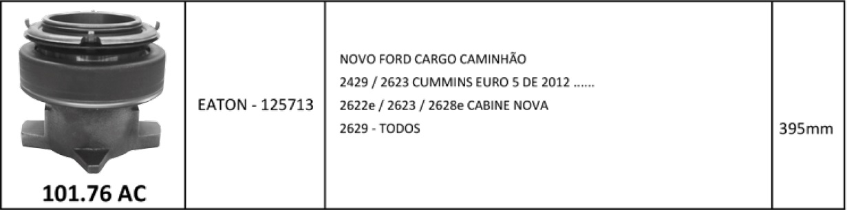 4485 - ROLAMENTO C/ MANCAL EMBREAGEM FORD CARGO CUMMINS SERIE C 395 MM DIAMETRO INTERNO GARFO 80MM