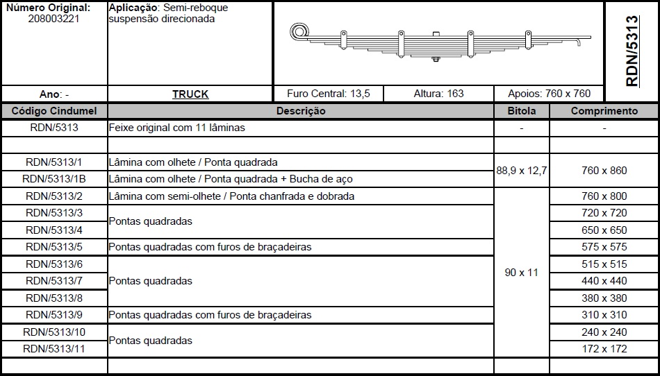 4514 - FECHO MOLA FECHO TRUCK TRAS MB OF1721 2ª SERIE C/ 8 LAMINAS FURO CENTRO REFORCADO