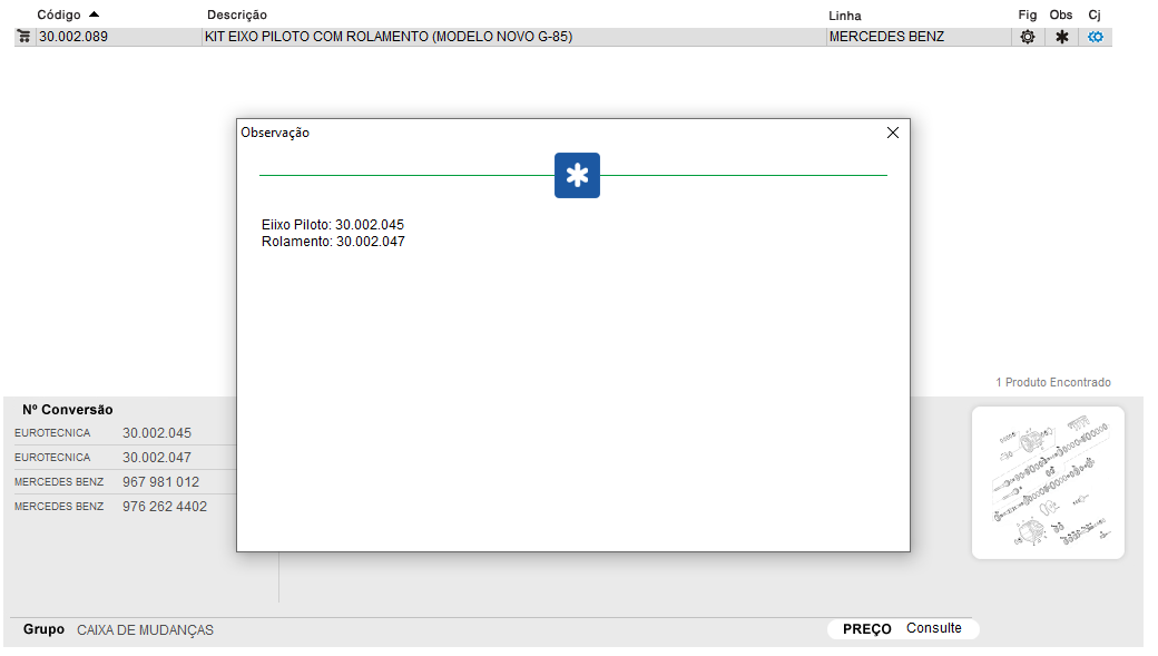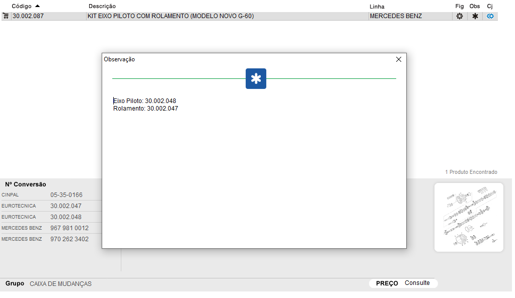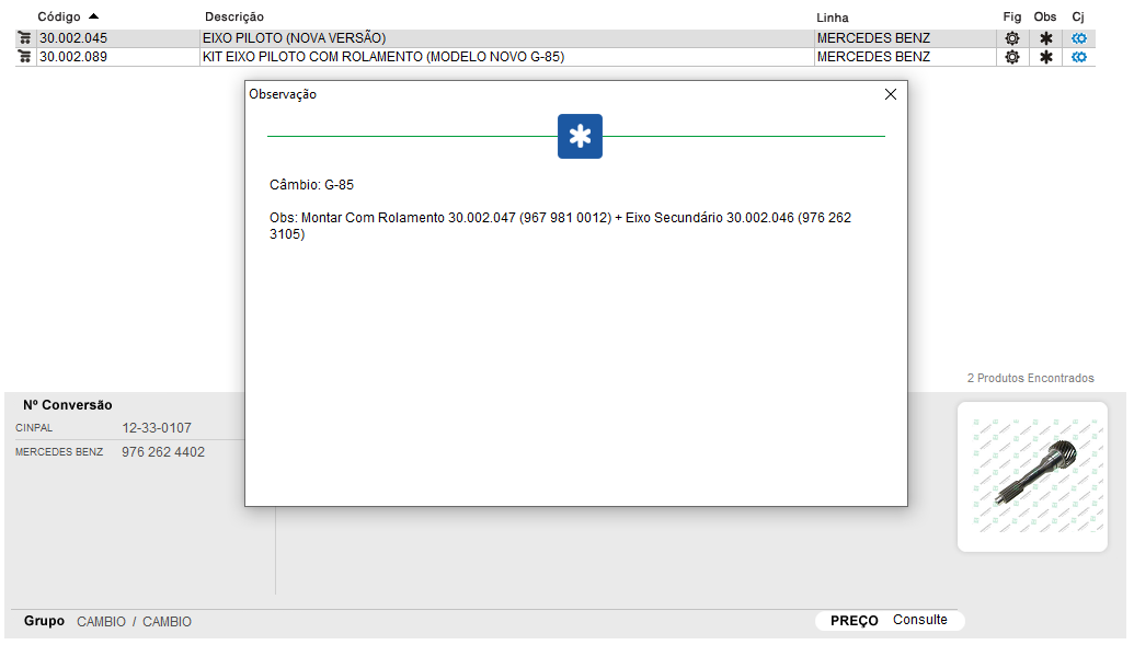 44823 - KITS EIXO PILOTO CAMBIO MB G 85 NOVA VERSAO C/ ROLAMENTO