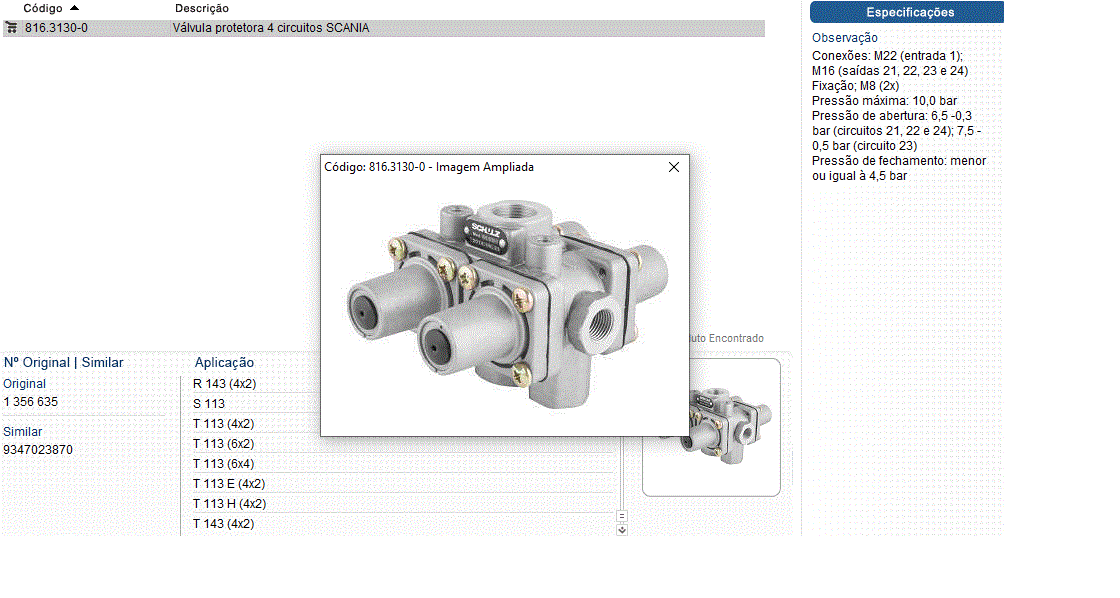 45760 - VALVULA PROTECAO SCANIA 113/114/143