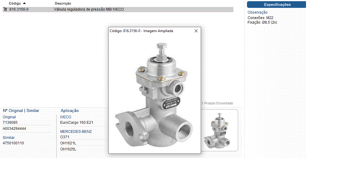 45767 - VALVULA REDUTORA PRESSAO IVECO EUROCARGO 160E21