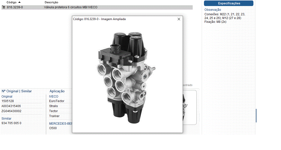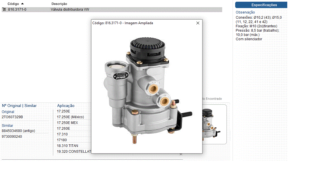 45770 - VALVULA DISTRIBUIDORA FORD CARGO/VW 16.300/35.300/2425/2622/2630/2631/3222