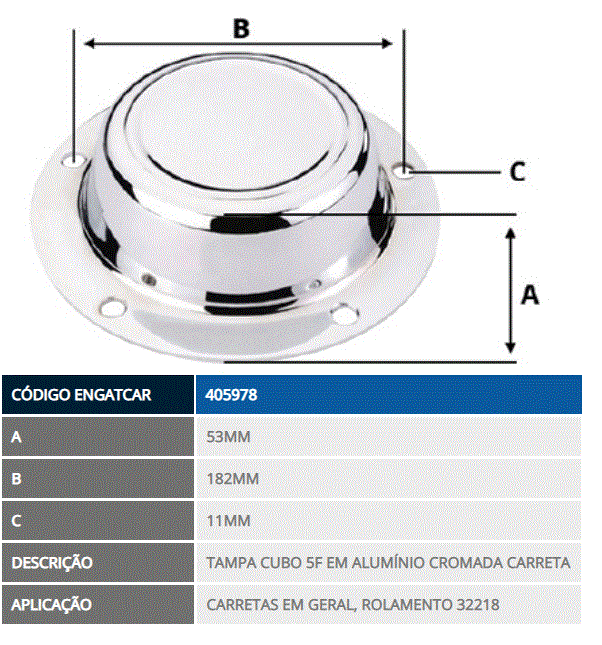 45790 - TAMPA CUBO 4-FURO CARRETA S/ LOGO 53X184X11MM CROMADA