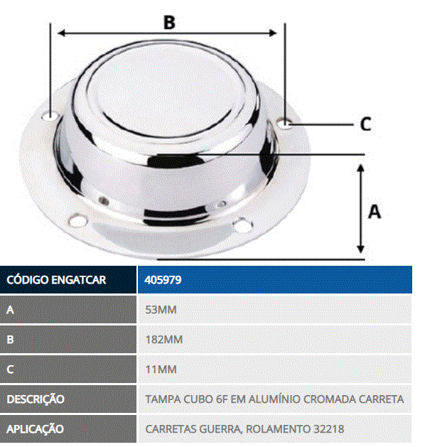 45791 - TAMPA CUBO 6-FURO CARRETA S/ LOGO 53X184X11MM CROMADA