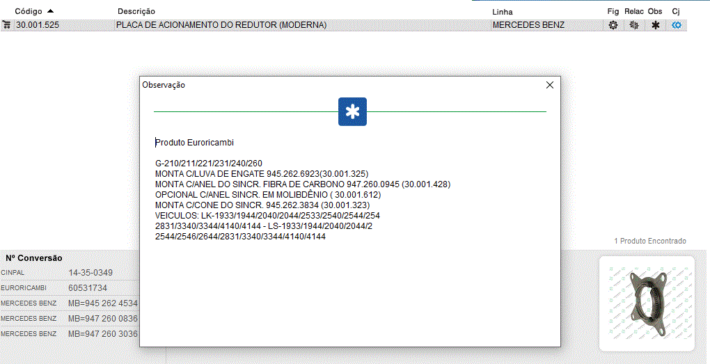 46271 - ARRUELA ENCOSTO CAMBIO MB ATEGO/ACCELO G85 CEMENTADO