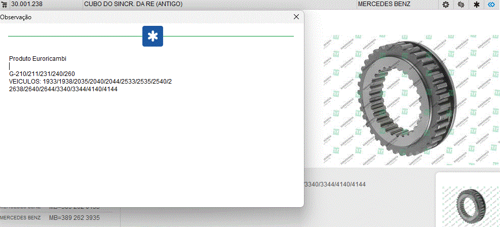 46301 - BUCHA ENGRENAGEM 1/3 608/708/709 39.4MM MB G2.24
