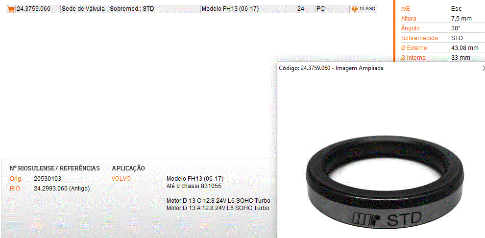 46440 - SEDE VALVULA ESCAPE VOLVO D13A/C FH13/NH13 15/... 30-G +0.10