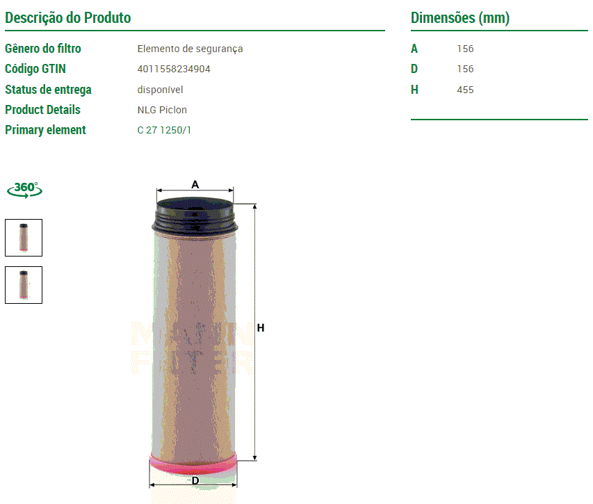 47077 - FILTRO AR SEGURANCA MAN TGX 28.440/29.440/29.480/33.440 D2066/D2676
