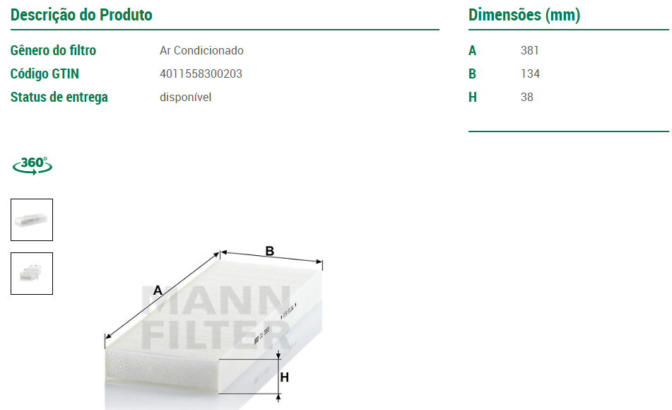 47078 - FILTRO AR CONDICIONADO MB ACTROS OM-541/502/501