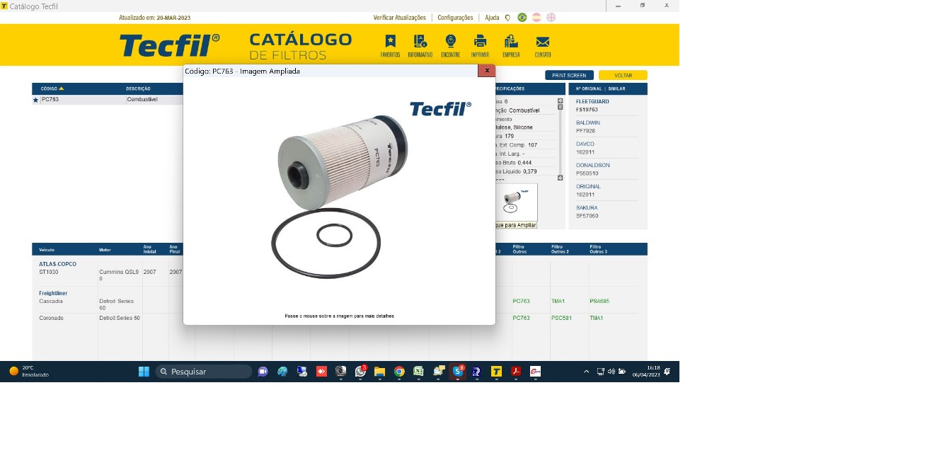47236 - FILTRO ROTATIVA SCANIA 124 P/G/R NTG MOTOR DC9 DC13 C/ANEIS BORRACHA