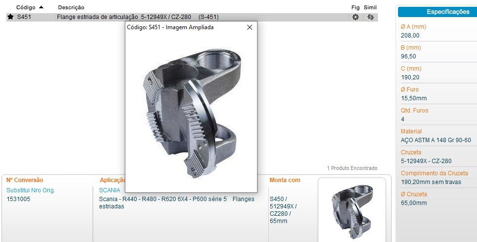 4785 - FLANGE CARDAN C/OLHAL SCANIA 124 R440/R480/R620/P600 SERIE 5 ACO